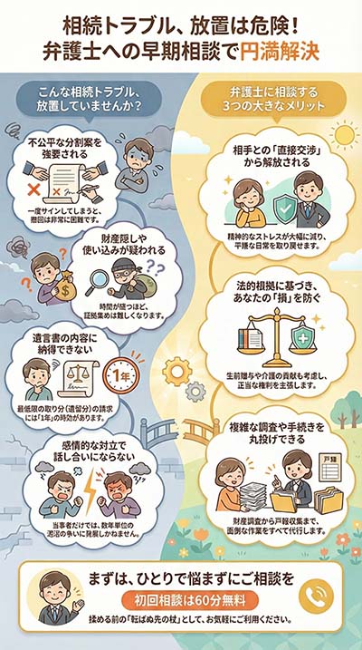 - 1. 相続問題は放置するほど複雑化し、解決が困難になるため「早期相談」が鍵