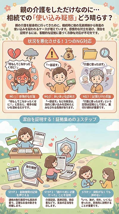 ここまで、財産の使い込みを疑われた場合の対処法を詳しく見てきました。まとめると: